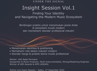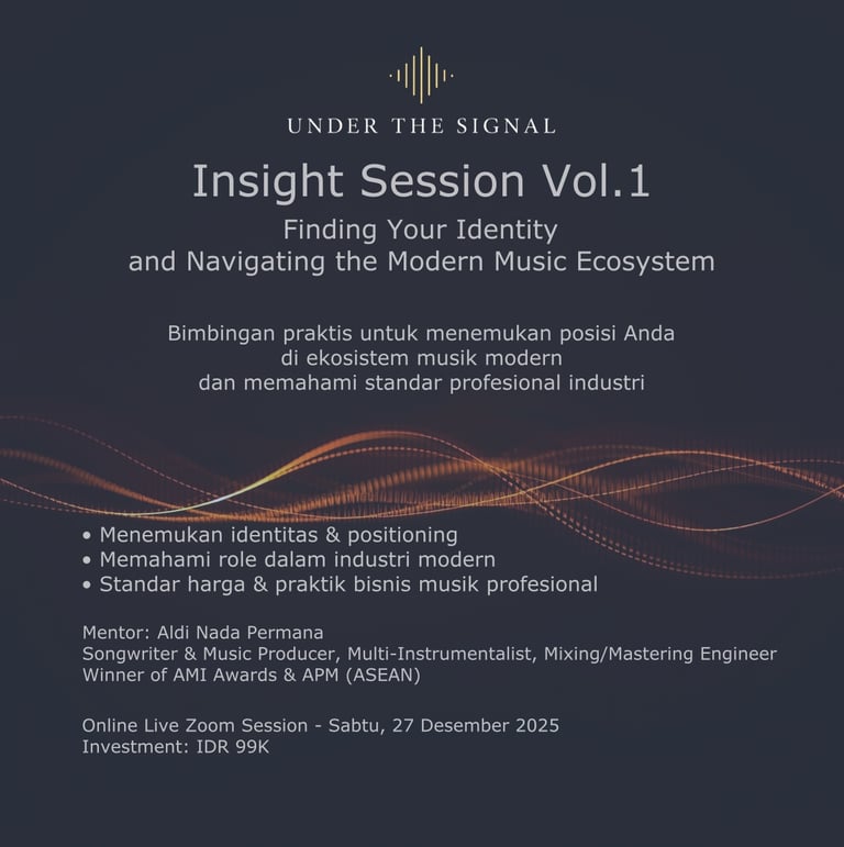 Setiap peserta akan diajak menelusuri langkah-langkah penting dalam produksi musik, termasuk arrangement logic, creative layering, frequency space management, dan mix clarity mindset — disampaikan langsung dengan contoh nyata dari project session profesional yang pernah digunakan di industri nasional.